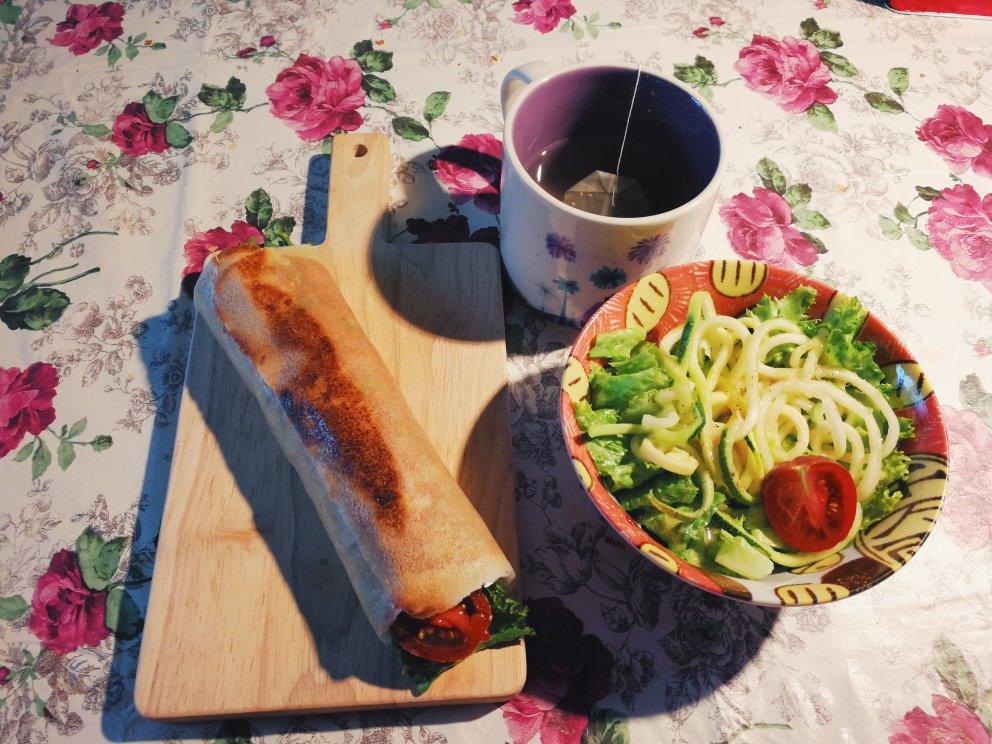 鸡肉番茄花生酱卷卷+香槟醋沙拉~