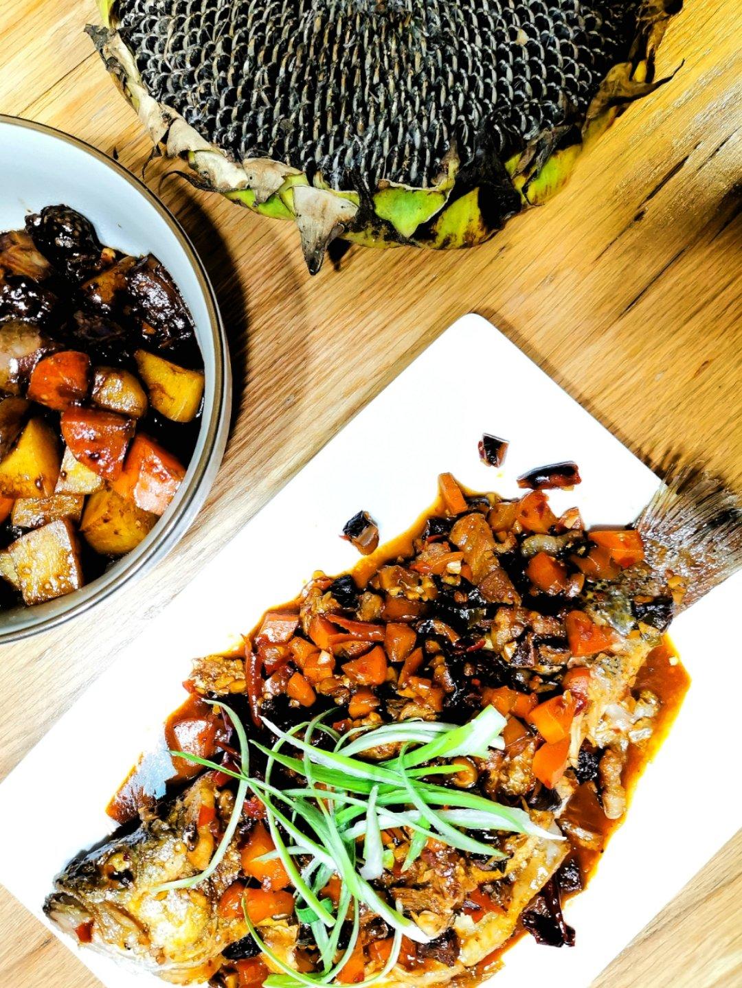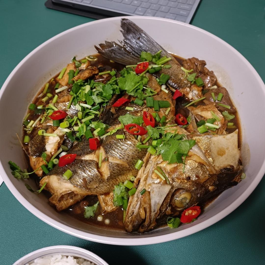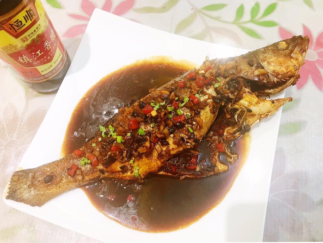 本来想清蒸 但是鱼太大了 改干烧了 味道还不错 方子有点咸 下次调整下 恒顺香醋一直很爱☺️