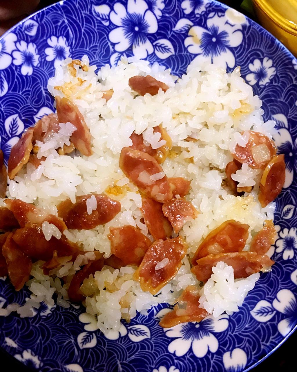 腊肠饭(腊肠放太多 下面有锅巴 哈哈 好吃)