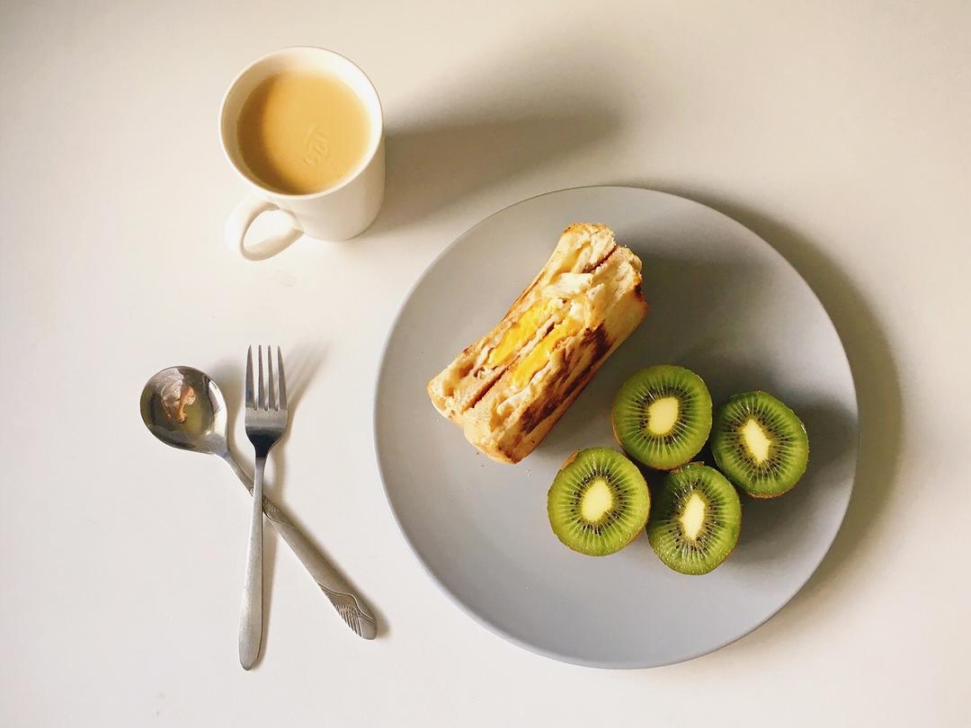 芝士煎蛋三明治 红茶奶茶 猕猴桃