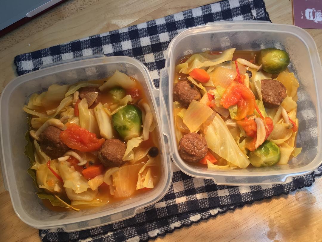 【茄汁肉丸番茄烩杂蔬汤】
