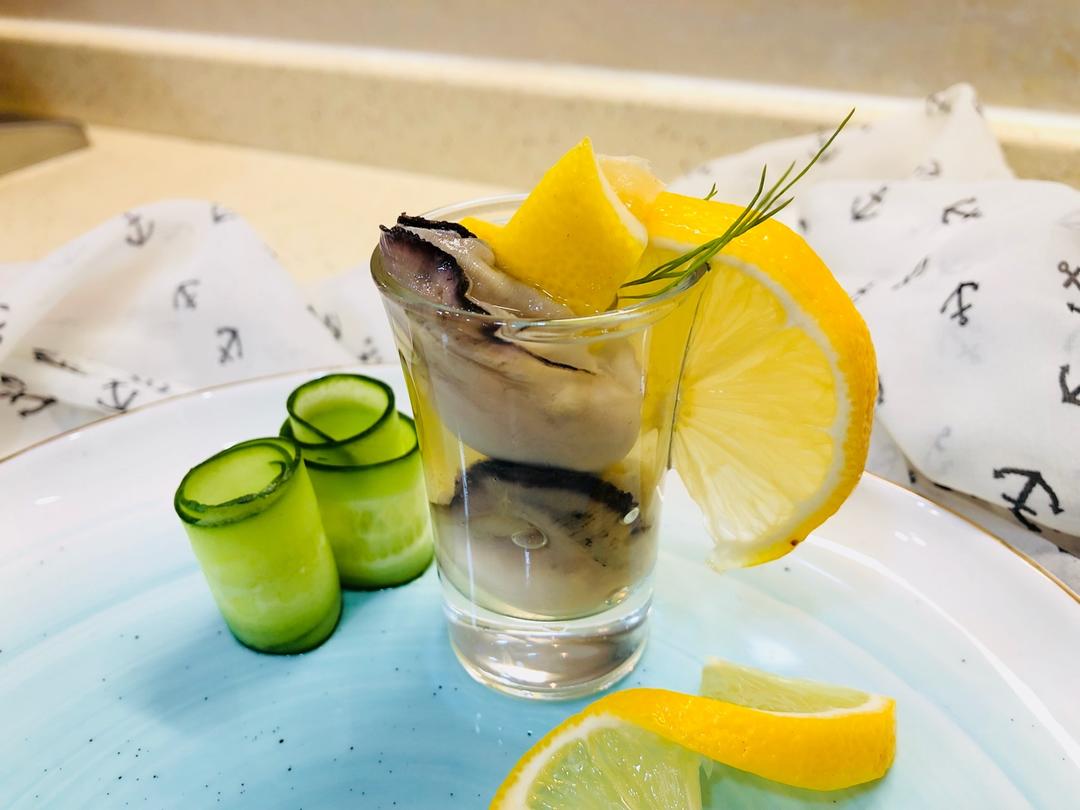 刁草伴柠檬汁冷泡生蚝