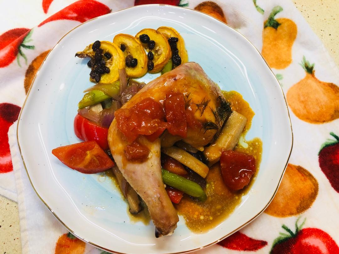 缤纷杂菜伴茄汁大鸡腿🍗,这里面有八种蔬菜哦……小朋友乖乖地全部吃完……😄
