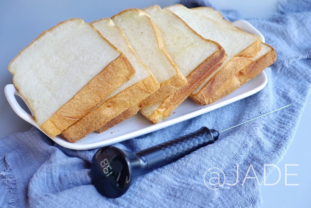 为消耗蛋黄而诞生吐司,绵软水润,不易老化,如果有多余的卡士达酱,替代汤种也是可行的