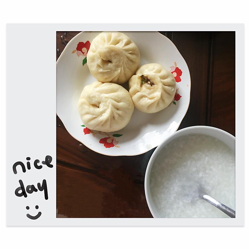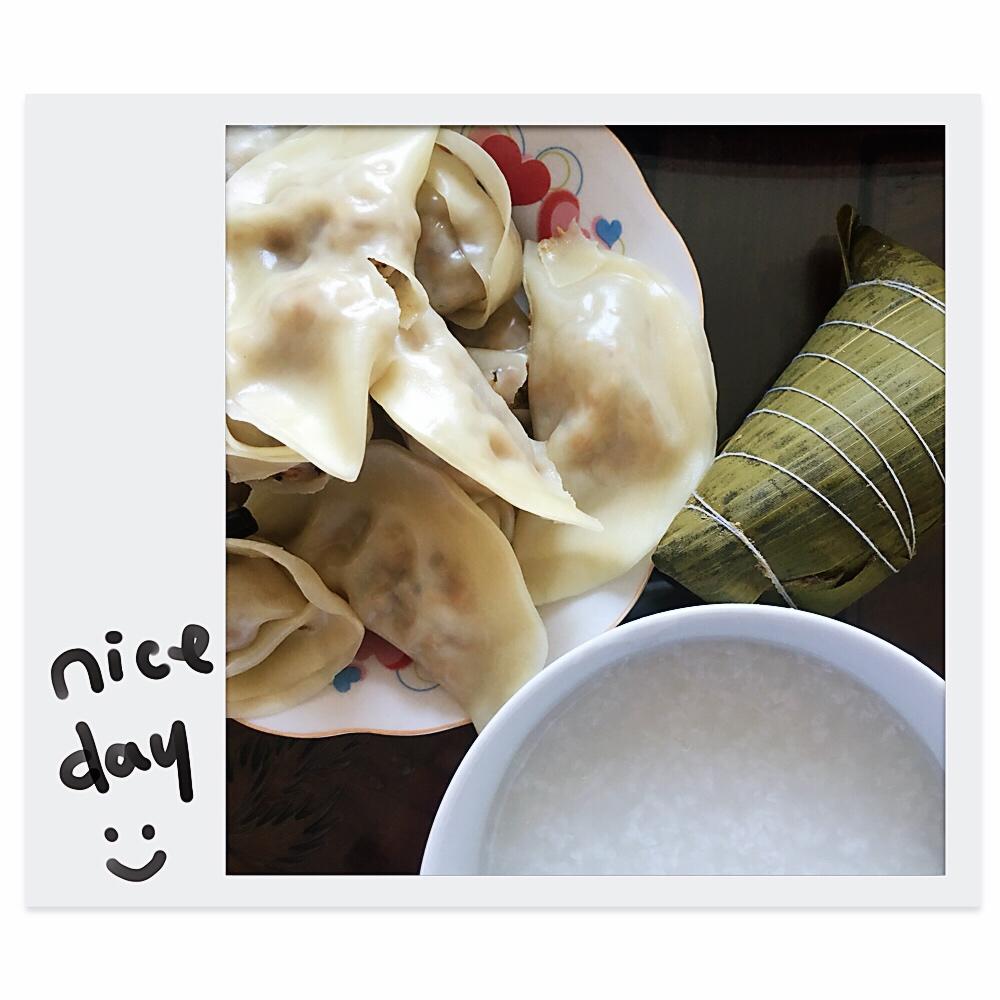 白米粥+蒸饺+婆婆包的粽子