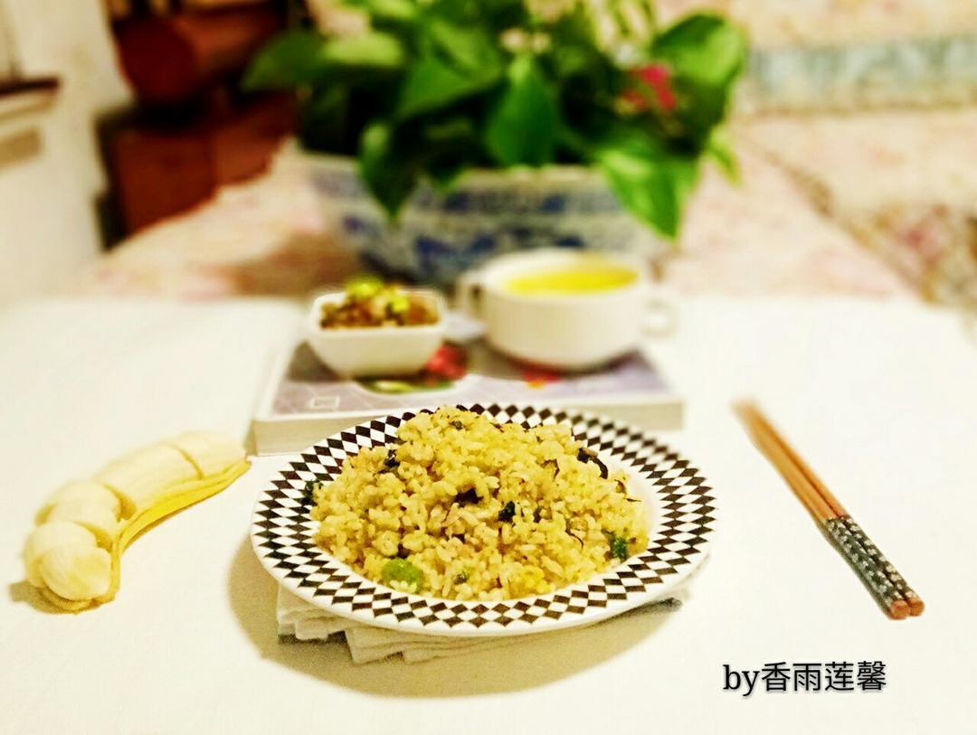 ——青菜培根炒饭+肉末酸豆角+鸡蛋汤+香蕉。小学生第一天上课,居然5:30就起...