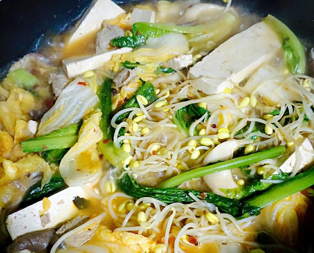 炖饭 糙米 白菜 毛豆 午餐肉 鸡蛋