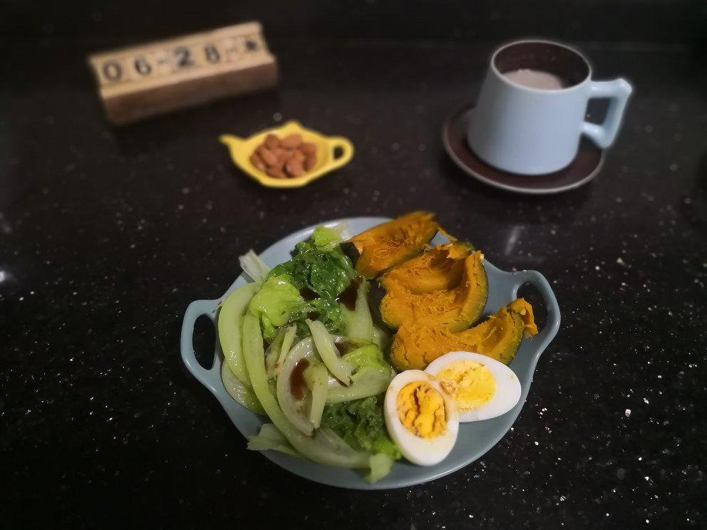 红豆薏米+贝贝南瓜+青菜+鸡蛋+杏仁
