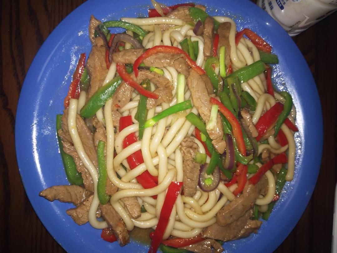 牛肉炒土豆粉!哈哈哈也还挺好吃的。晒得有点晚