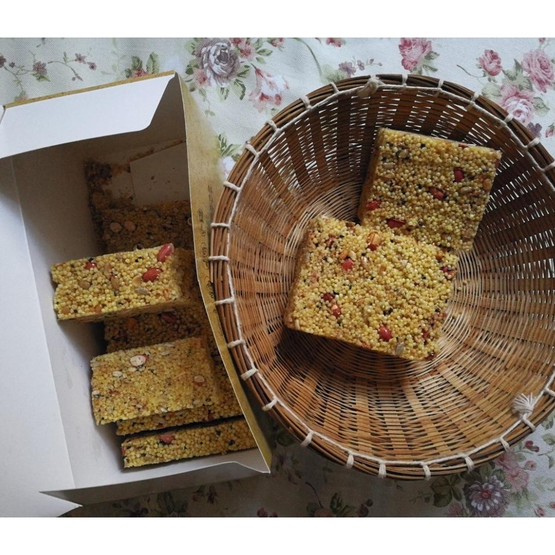 小米酥。炸过的酥糖,油香香的,里面有花生和黑芝麻。