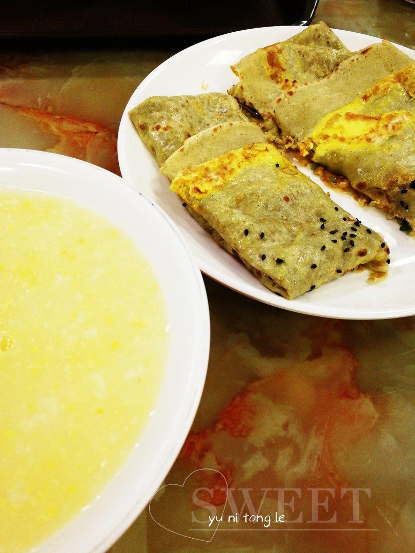 玉米粥+杂粮煎饼 =美美哒早餐(ღ˘⌣˘ღ)