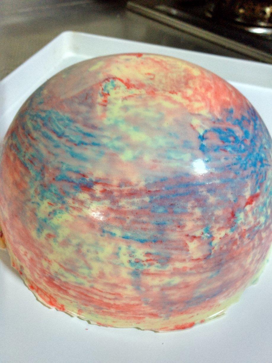 没有模具用玻璃碗做的,巧克力是梵豪登代脂可可,但是一冷藏就咧了,不知道为什么?