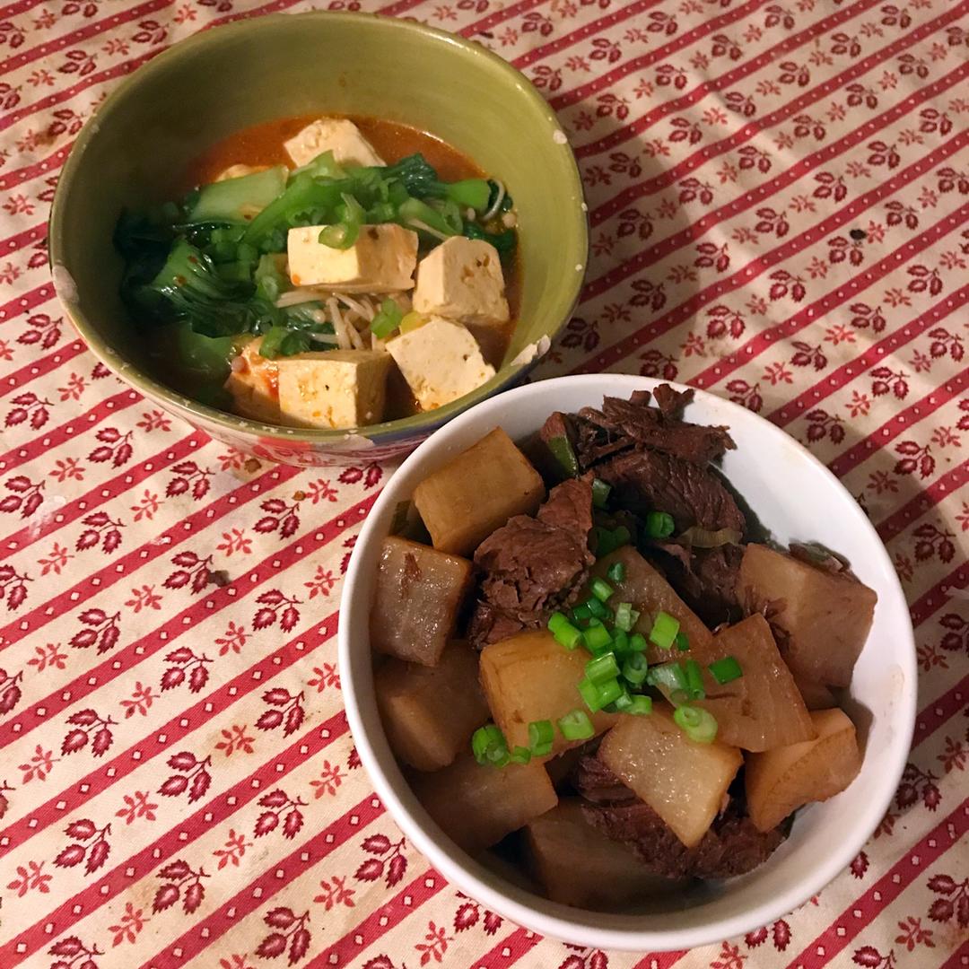 萝卜牛肉,水煮豆腐青菜金针菇