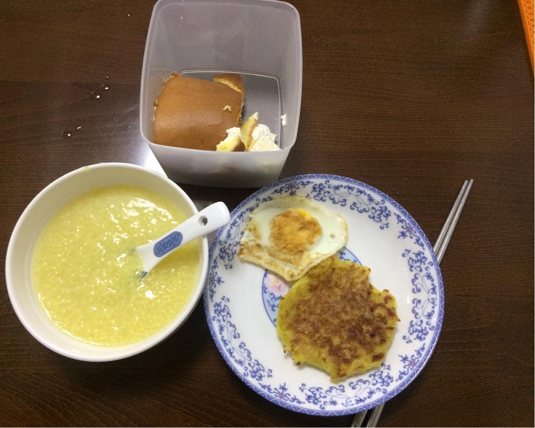 昨天换了方子做蛋糕卷,火大了,裂了!土豆丝饼好吃,下次再把玉米青豆胡萝卜丝加进去。没有枸杞子了,要不然就加到小米粥里了。...