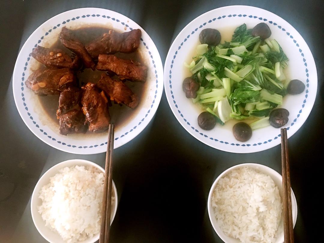 阳光明媚的周六,-15度,窝在家里做了糖醋排骨、香菇菜心