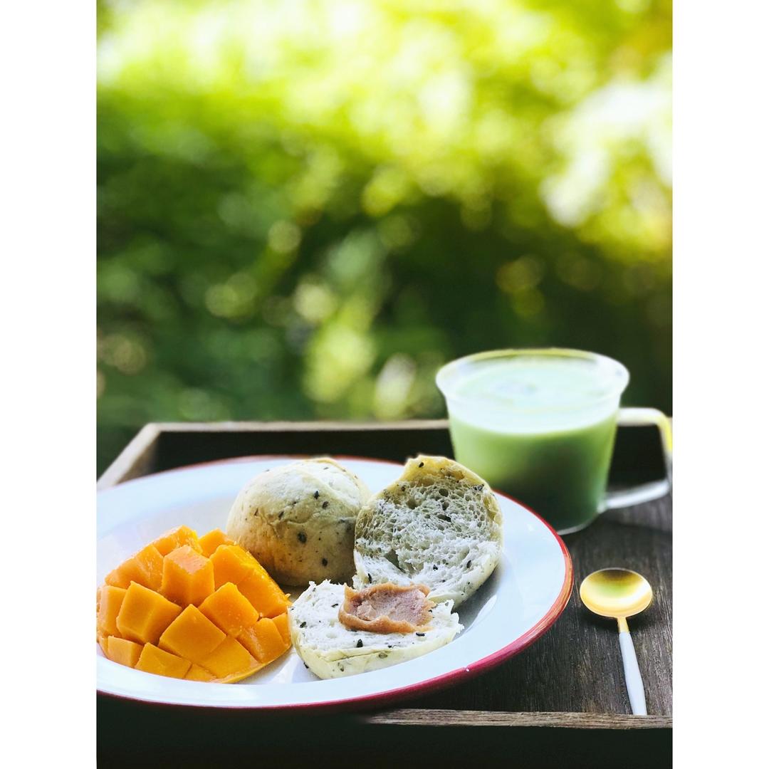 Day2⃣️0⃣️:黑芝麻法国球+芒果+抹茶🍵