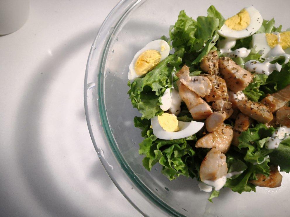 一人份的简易沙拉。货架前纠结10分钟选的沙拉酱 可以打满分😎