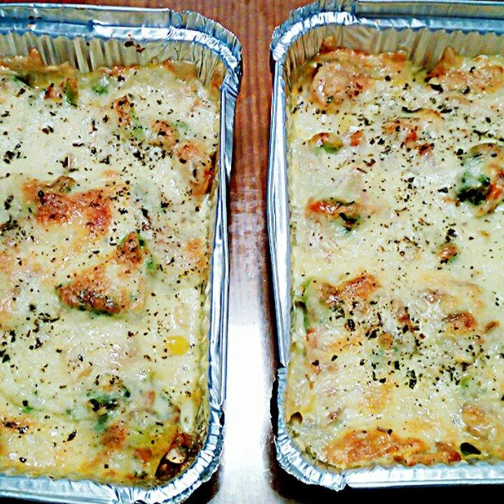 自己多加了些料,用番茄碎+番茄酱+淡奶油勾汁,好吃!
