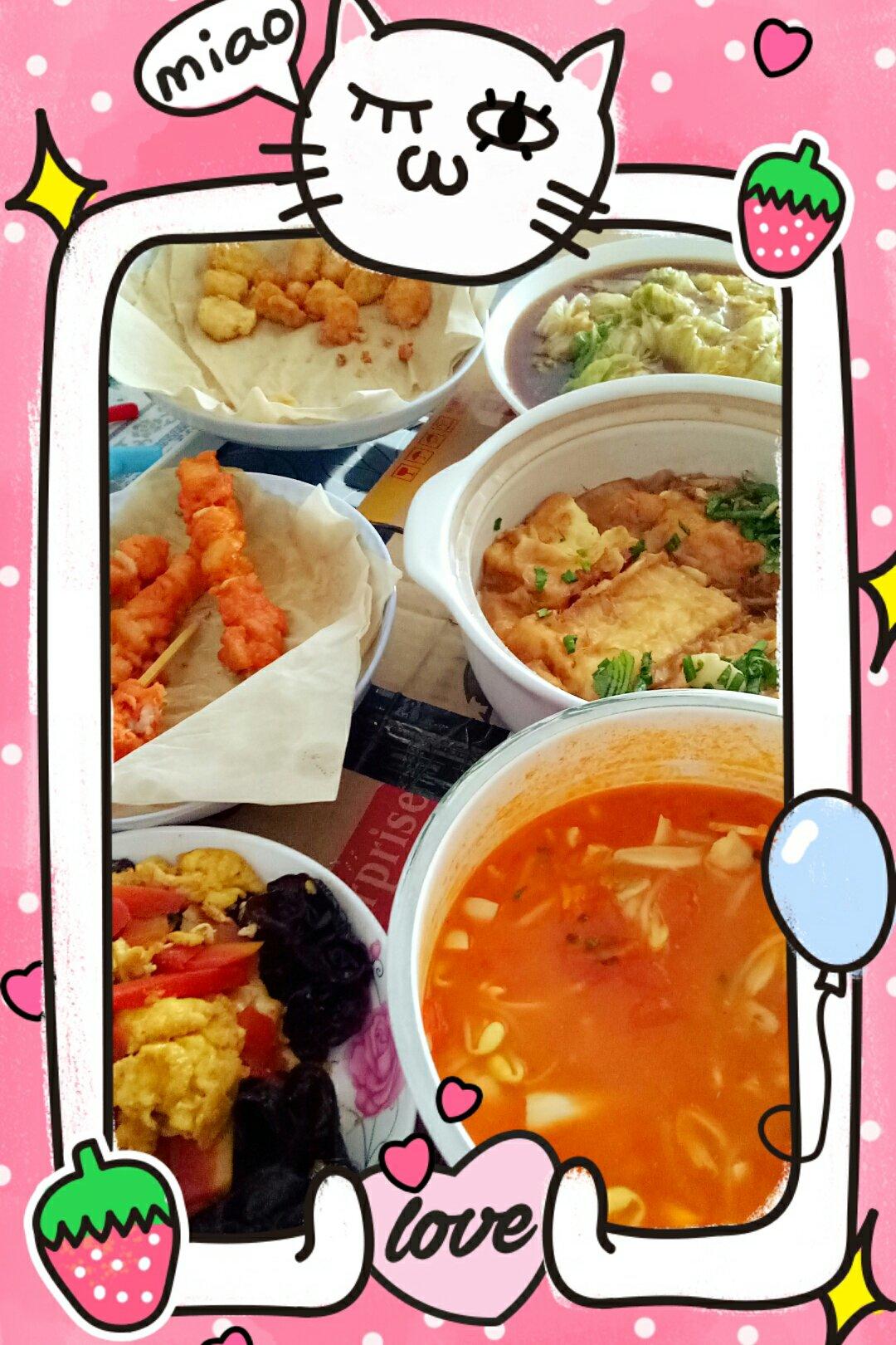 午餐像打仗,现在才有时间传上来😪为了俩宝全清淡。鸡米花+骨肉相连+番茄鱼+锅塌豆腐+蚝汁生...