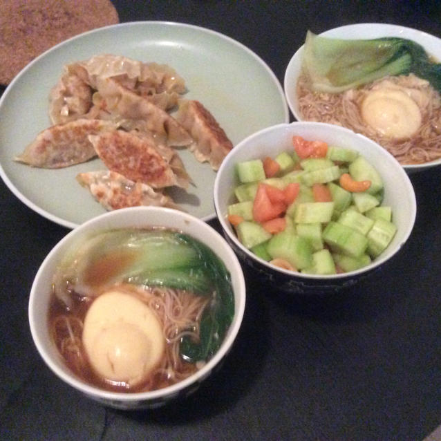 炝锅面+黄瓜沙拉+泡菜煎饺+《星球大战》,美好的午餐。
