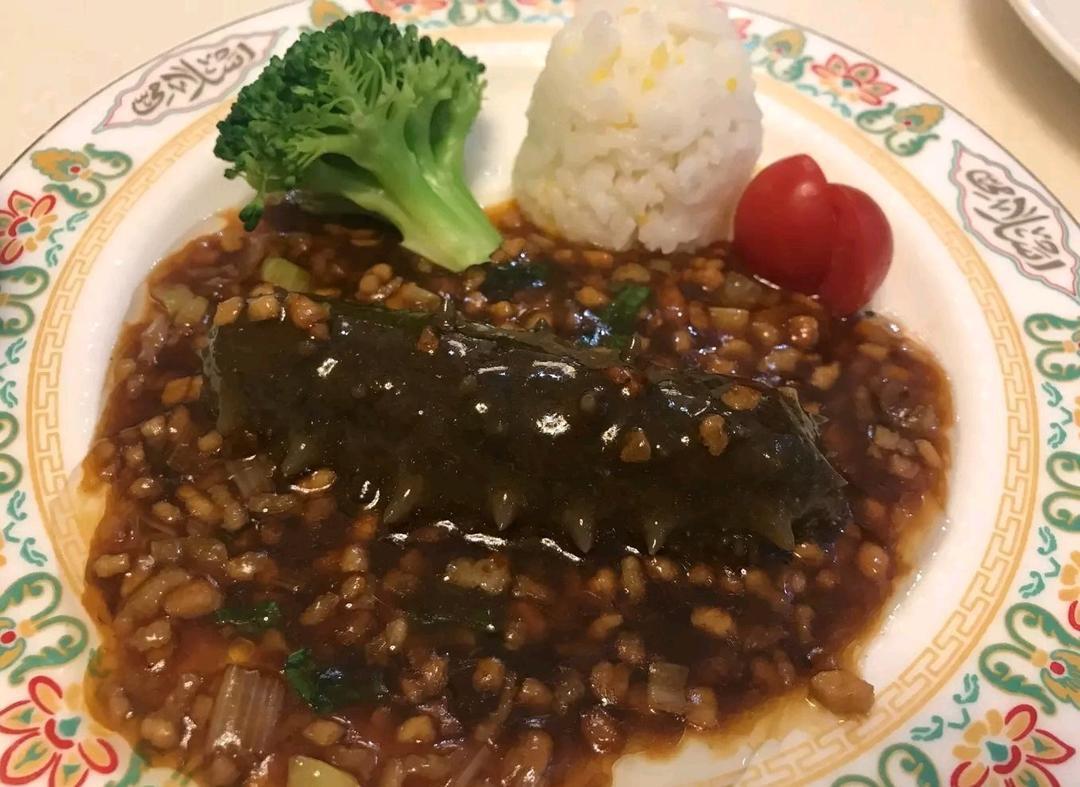 肉沫海参捞饭。拍完照赶紧添一碗饭扣上去,大黄米饭好吃哒(●ˇ...