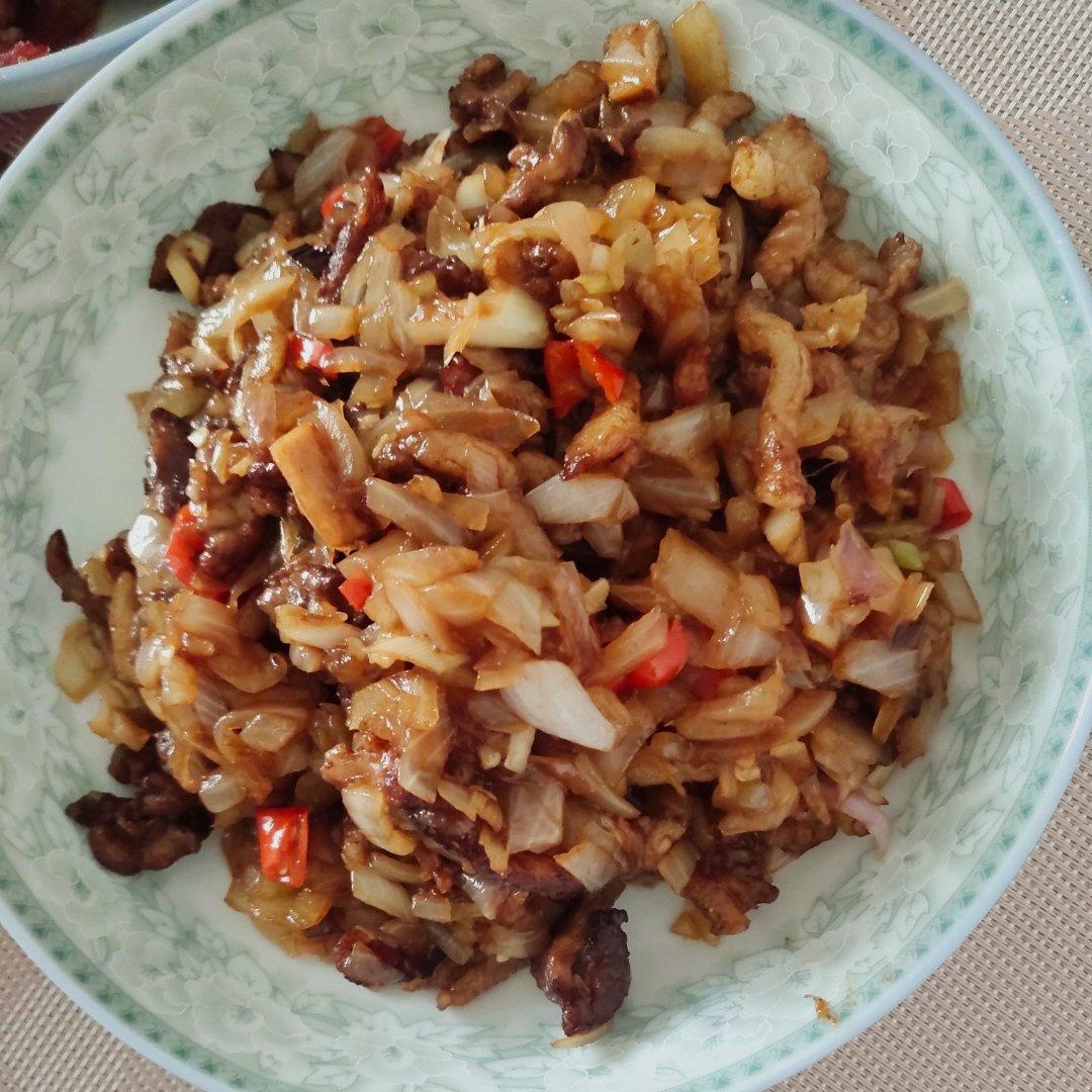辣椒炒酸豆角,酸豆角是自家晒干腌的,拌饭简直不要太好吃☺