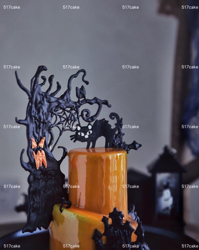 法式甜品喷砂慕斯蛋糕、甜点喷砂淋面装饰、万圣节法式甜品