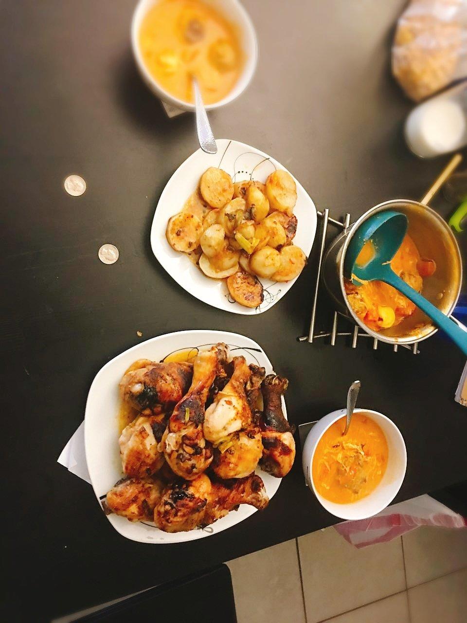 今天心情很好 做了烤鸡腿 烤土豆 番茄金针菇丸子汤 嘿嘿嘿