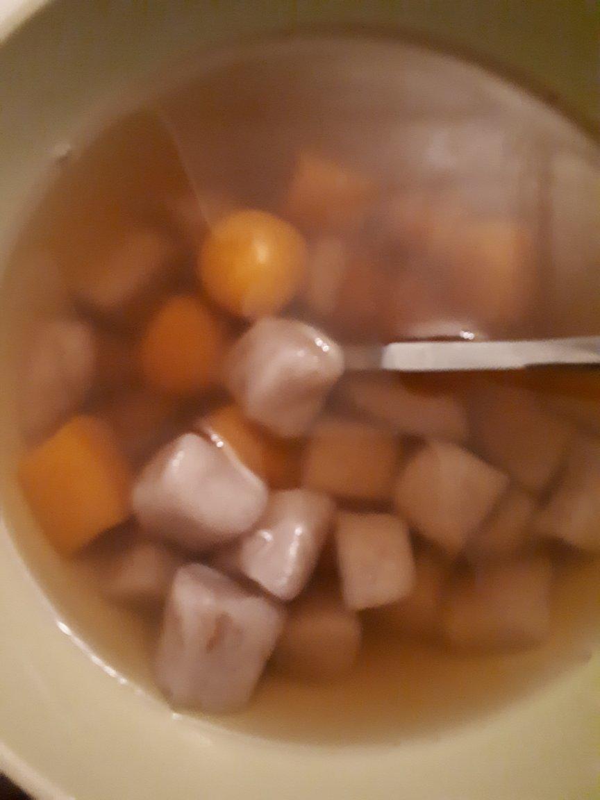 做的芋圆和包菜煎饼,孩子很喜欢