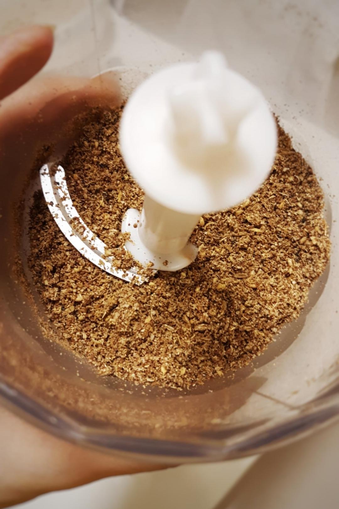 手持搅拌棒的干磨杯打的,不够碎,做快手面包用。非常非常香。