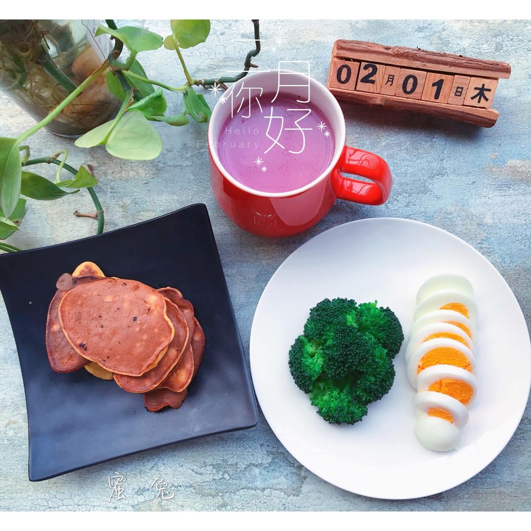 放假的早餐总是会简单一些~~紫薯花生核桃米糊~香蕉🍌小饼~西...