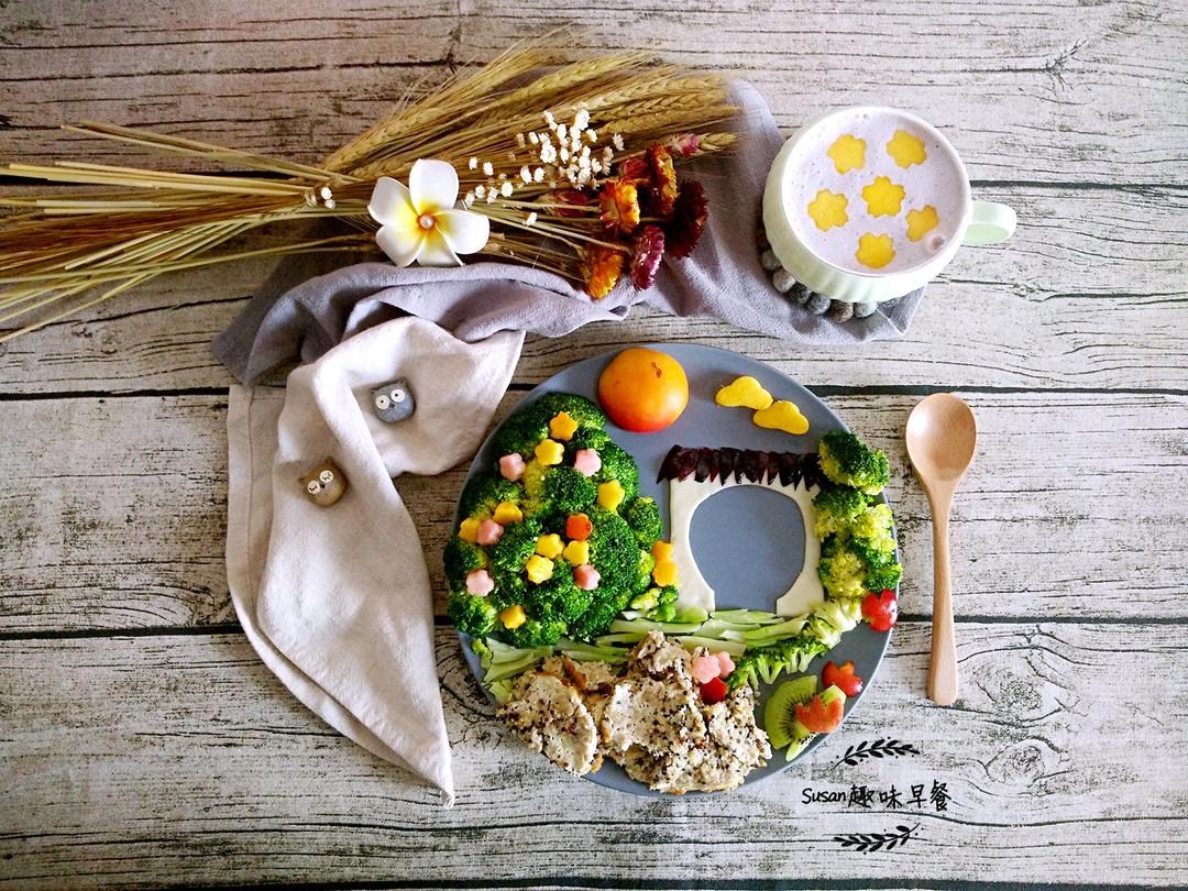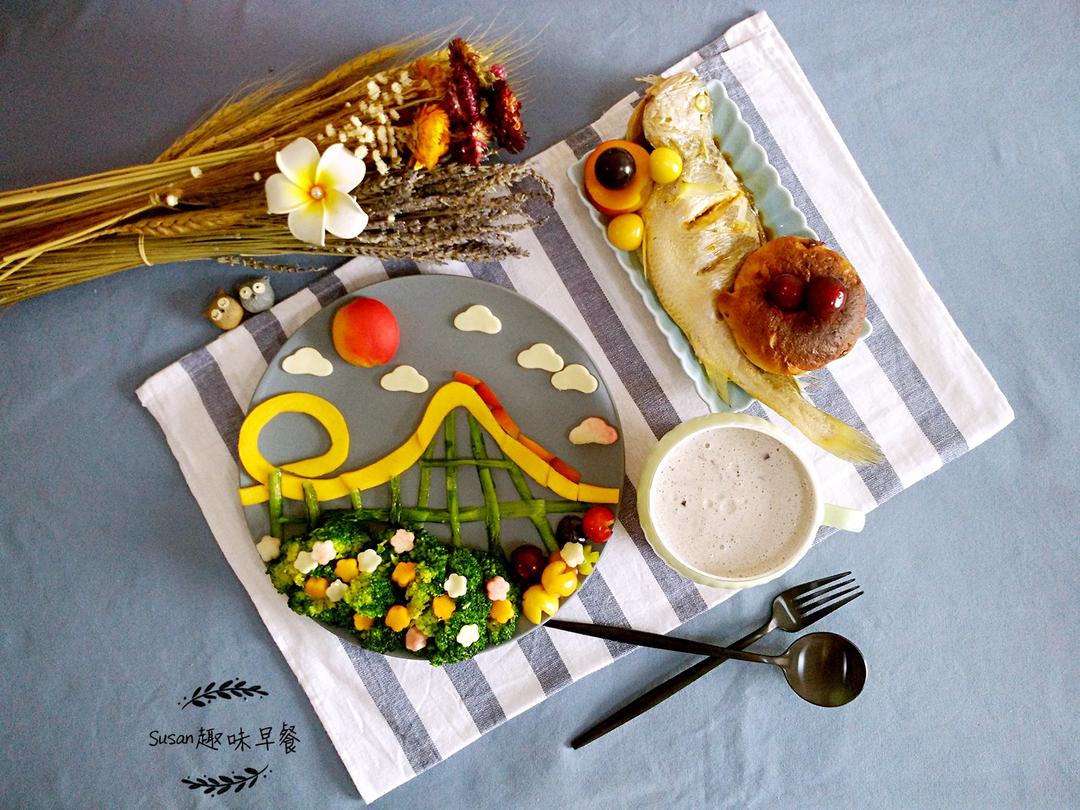 早安,Susan趣味早餐第495号,游乐园系列之过山车。清炒西兰花,无糖无油贝...