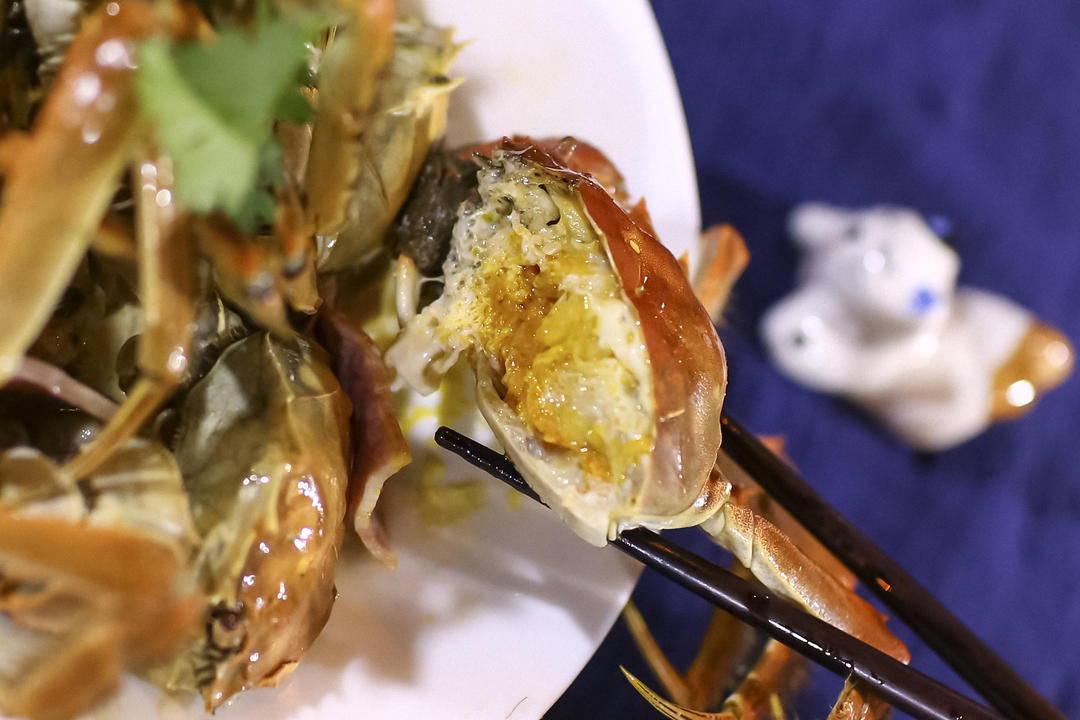 火腿蒸大闸蟹,美味