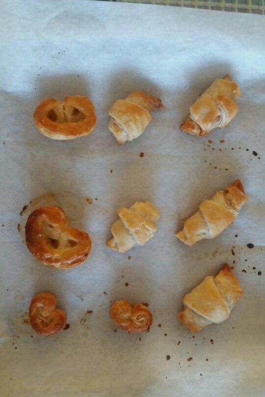 迷你蝴蝶酥&迷你牛角酥,黑三角是巧克力蛋糕,好吃~