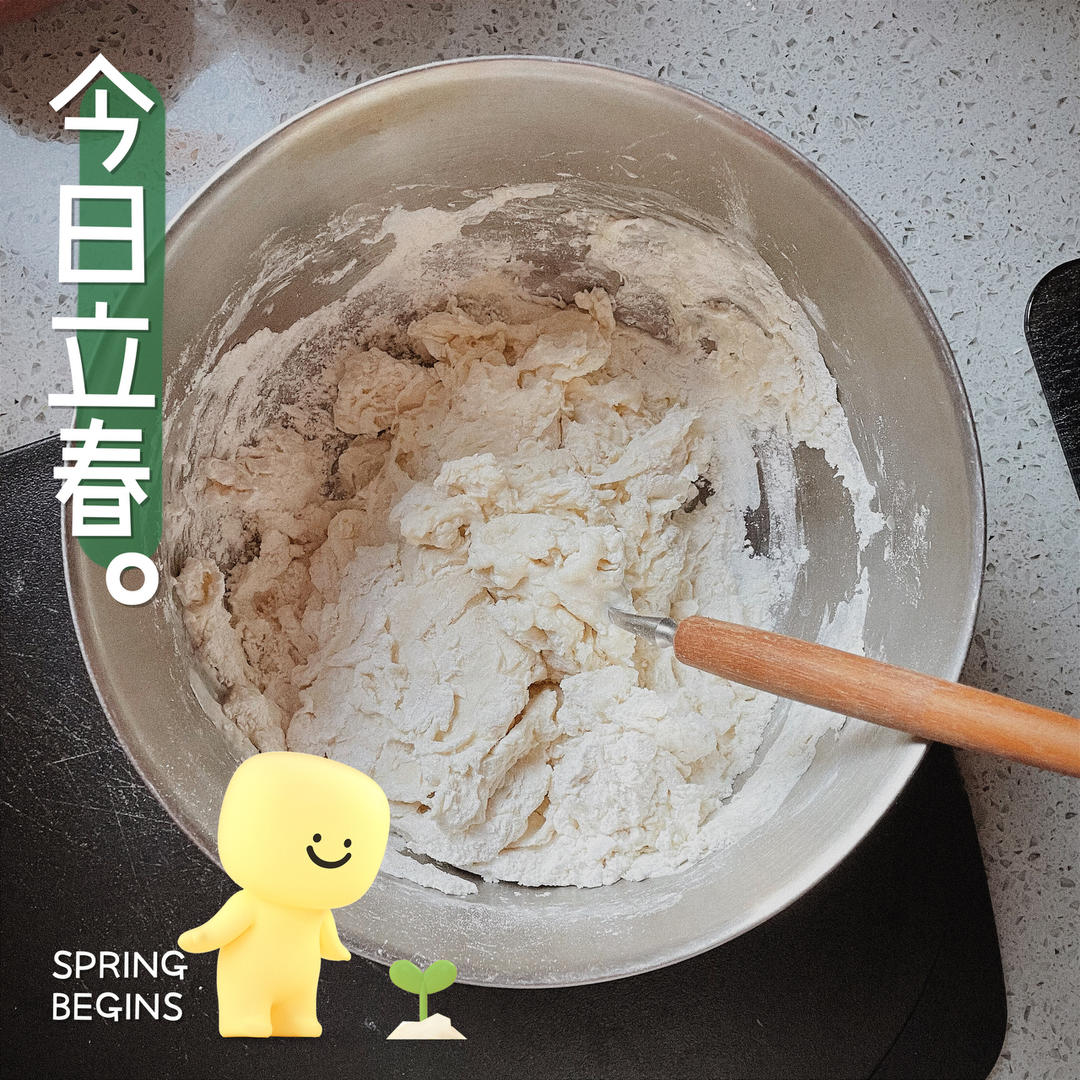 去年立春日,被排长队的春饼店劝退😂今年自己动手,和面、烙饼,炒菜码!