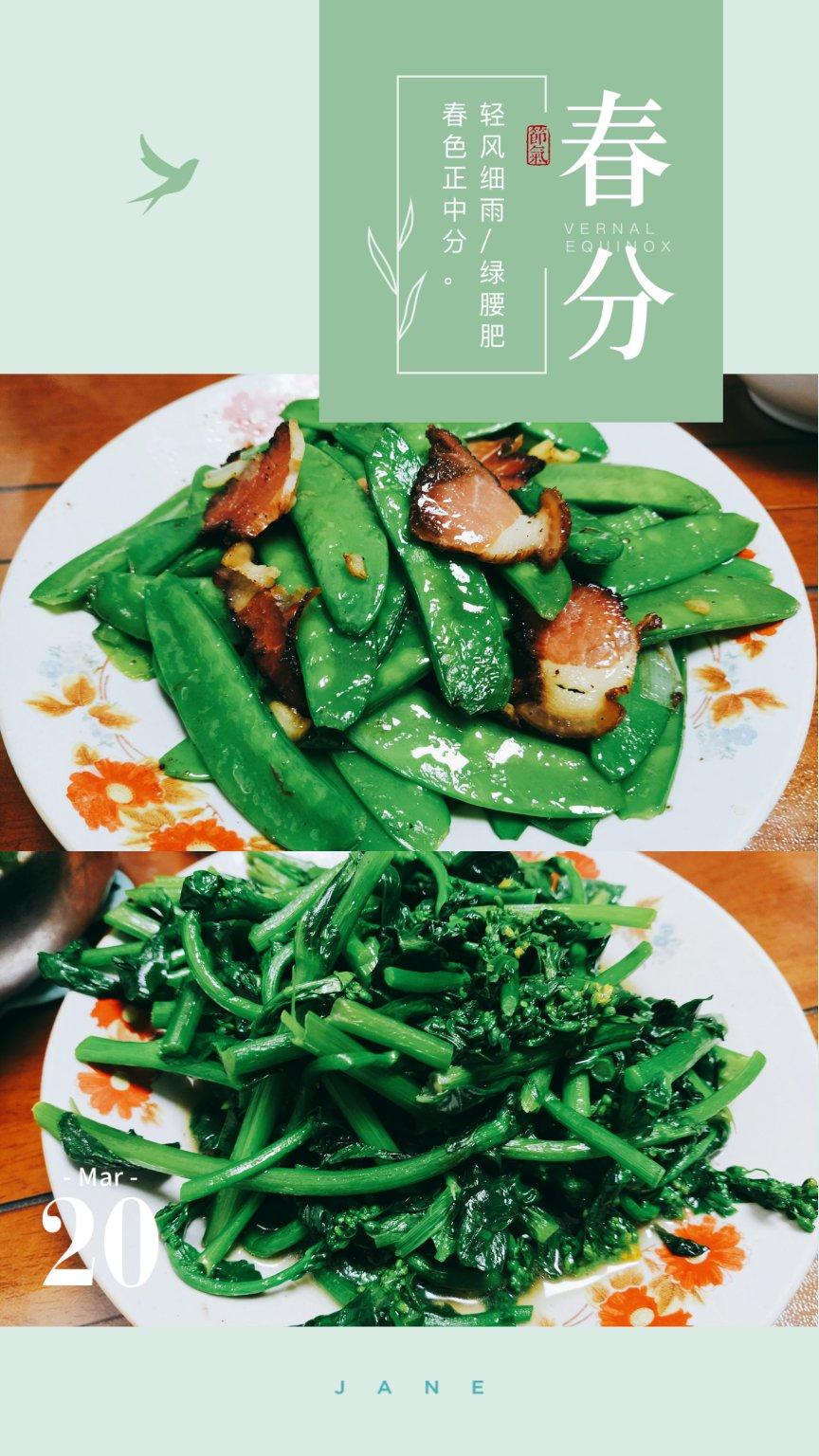 春分食春菜,春菜翠色滴。清朝菜薹,荷兰豆炒腊肉,酸菜鱼。老爸的手艺👍🏻👍🏻👍🏻必须光盘。