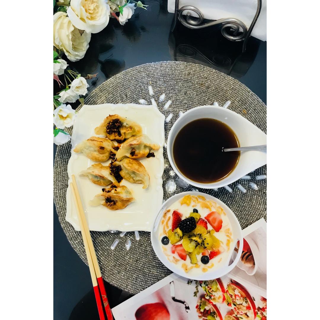 其实我还是爱吃煎饺子,昨晚剩下的早上一煎,再淋上我的油辣子。emm,香极了。再配上我的咖啡和水果燕麦—— 中西药结合疗效...