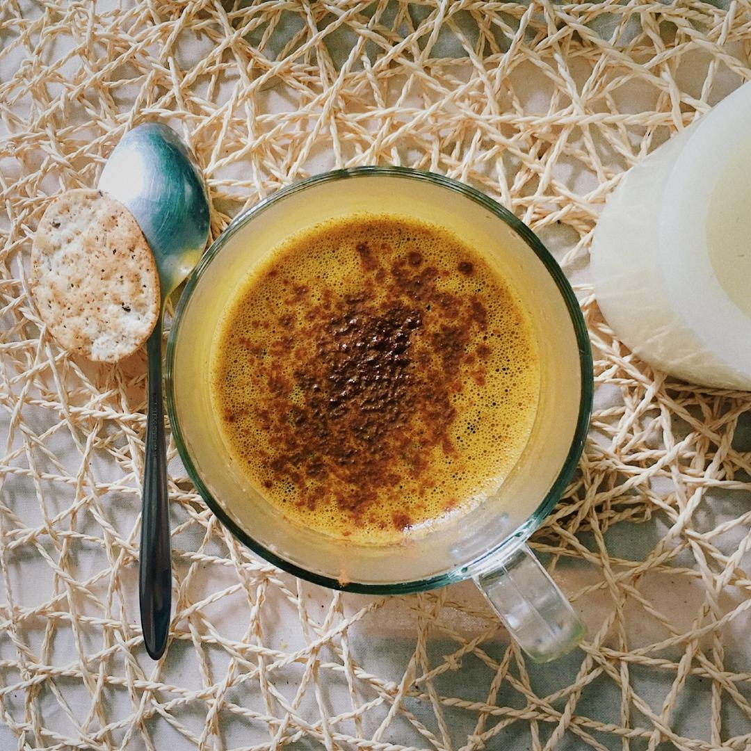 黄金拿铁~最近真是爱上了姜黄,据说可以消炎去火。杏仁奶、姜黄、肉桂、两片新鲜薄荷叶、两勺亚麻籽——上搅拌机搅拌均匀,然后...
