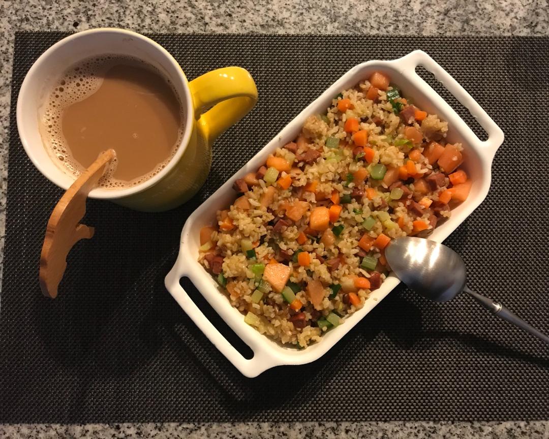 哈密瓜炒饭,配奶茶