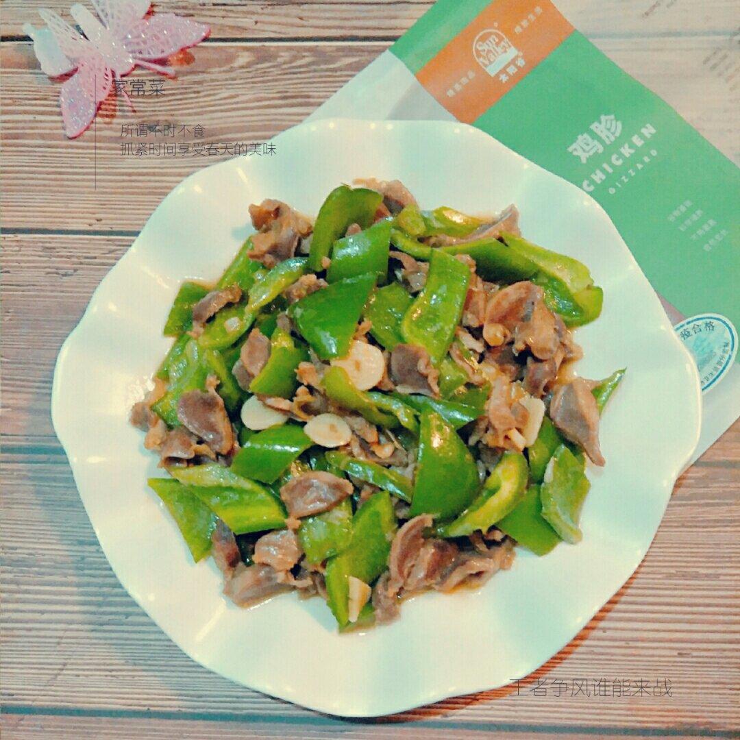 晚餐,用太阳谷鸡胗炒的青椒炒鸡胗,味道特别可口。