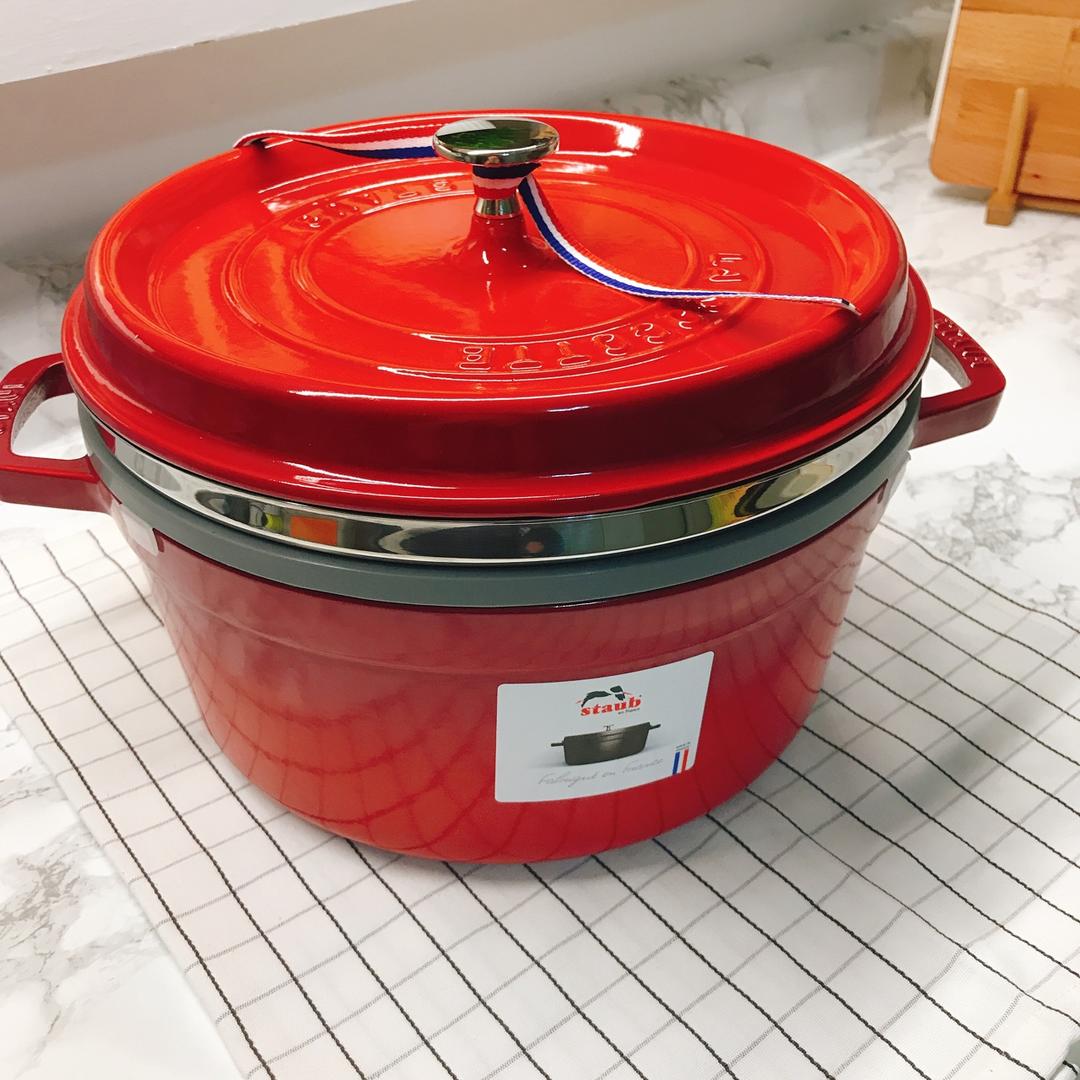先生送的Le Creuset的第一个白珐琅铸铁锅,美到不行,接下来好好养锅,传给未来的孩子😄周日去超市买了一堆调料,要过...