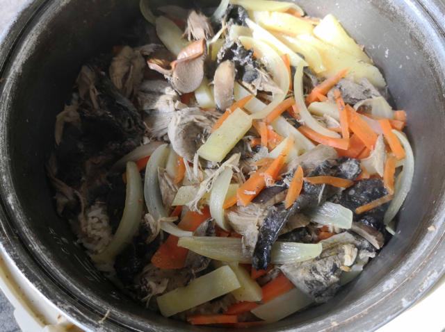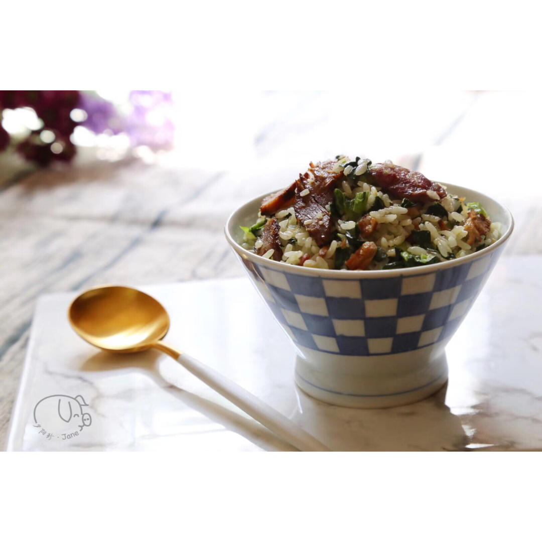 午饭,腊肉香肠菜饭,好香好香…😋😋