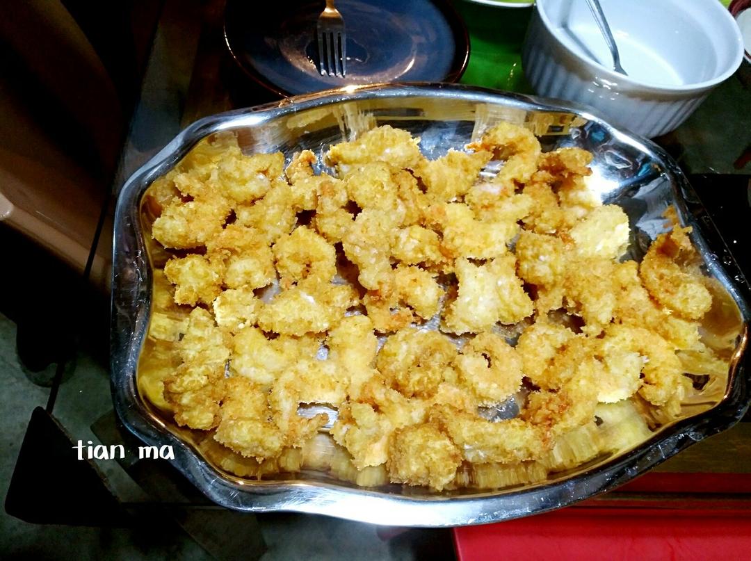 碳烤大虾配酸辣蘸料,超市里找到面包糠给孩子们做个炸虾...