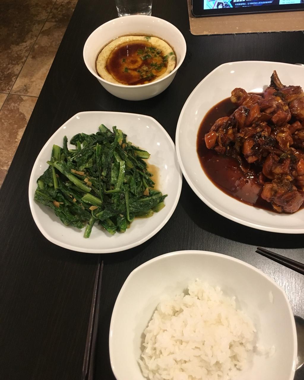 蒜蓉油麦菜 红烧鸡腿 鸡蛋羹