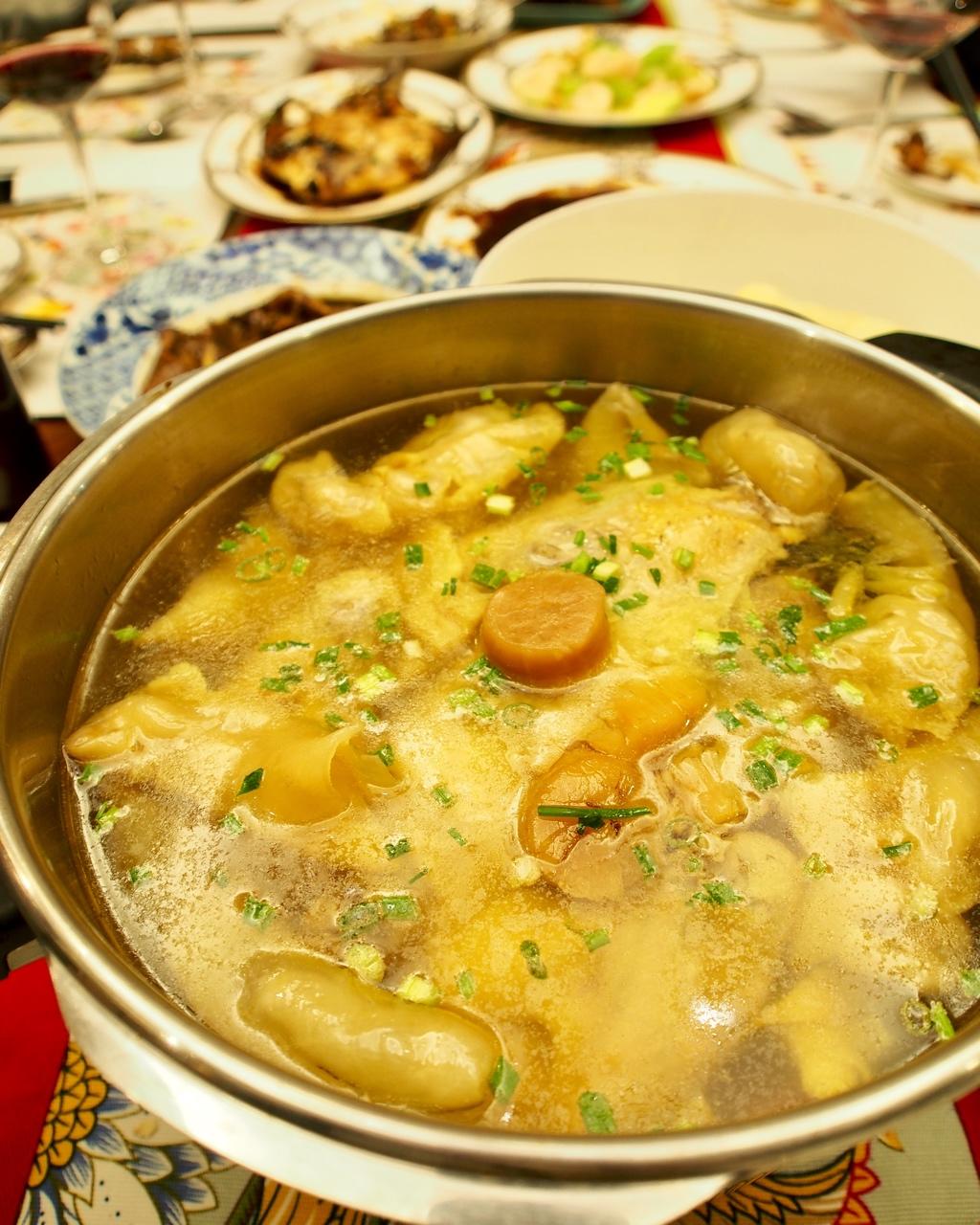 宴客,汤一定是重头戏,花胶瑶柱冬笋火腿煲土鸡汤,好喝极了!