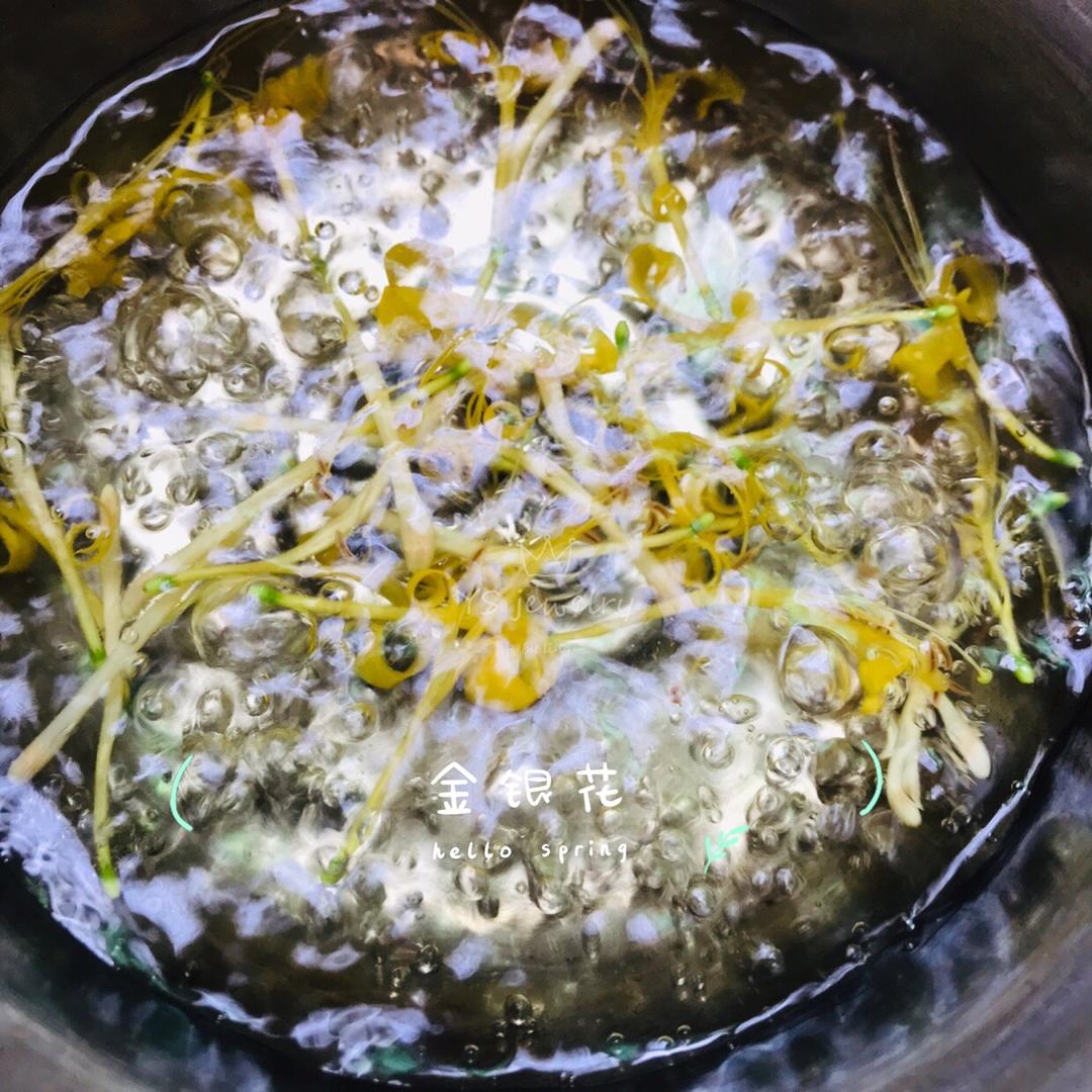 喉咙不舒服,煮了现摘的金银花水