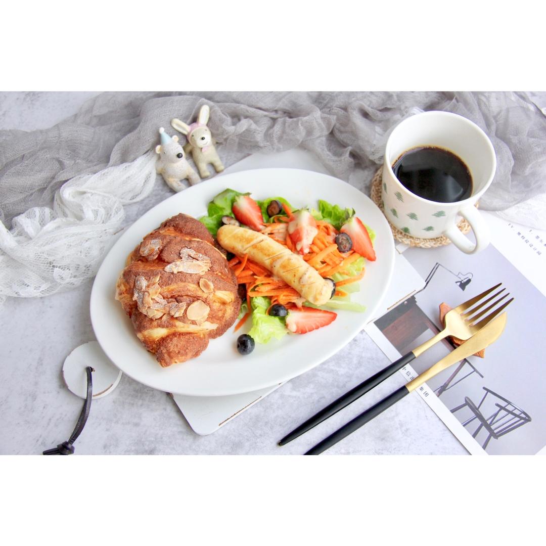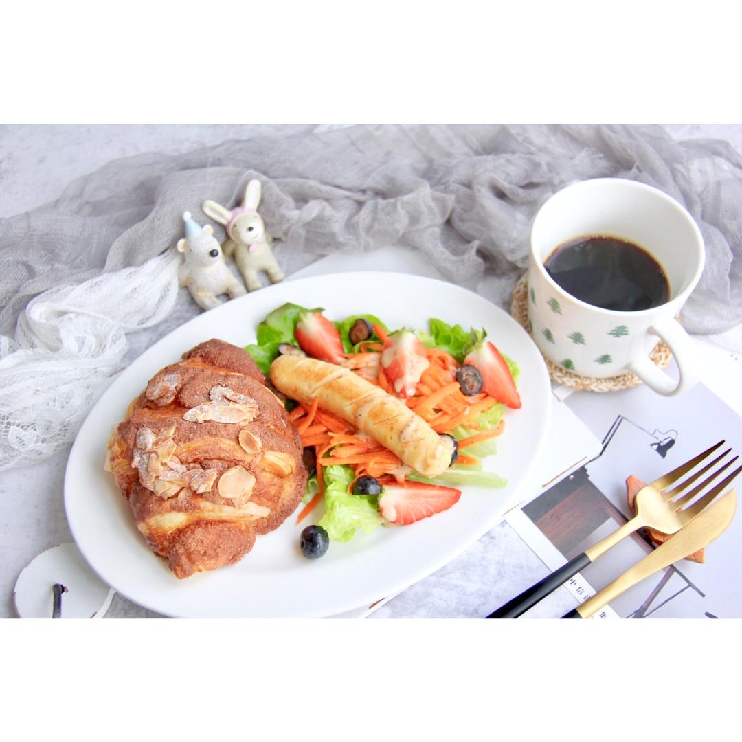 今日朝食:杏仁可颂🥐➕蔬菜沙拉🥗➕手冲☕