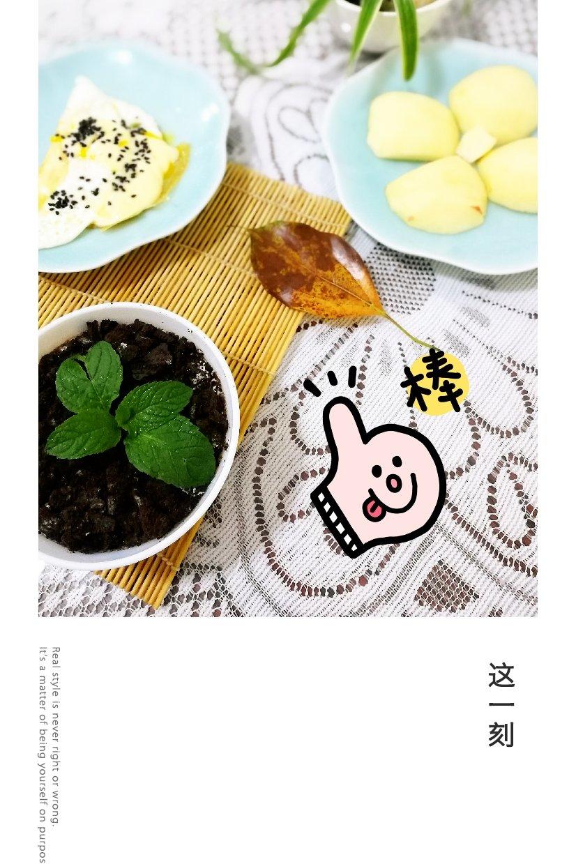 奥利奥酸奶,芝士蛋,苹果。酸奶像不像盆景?