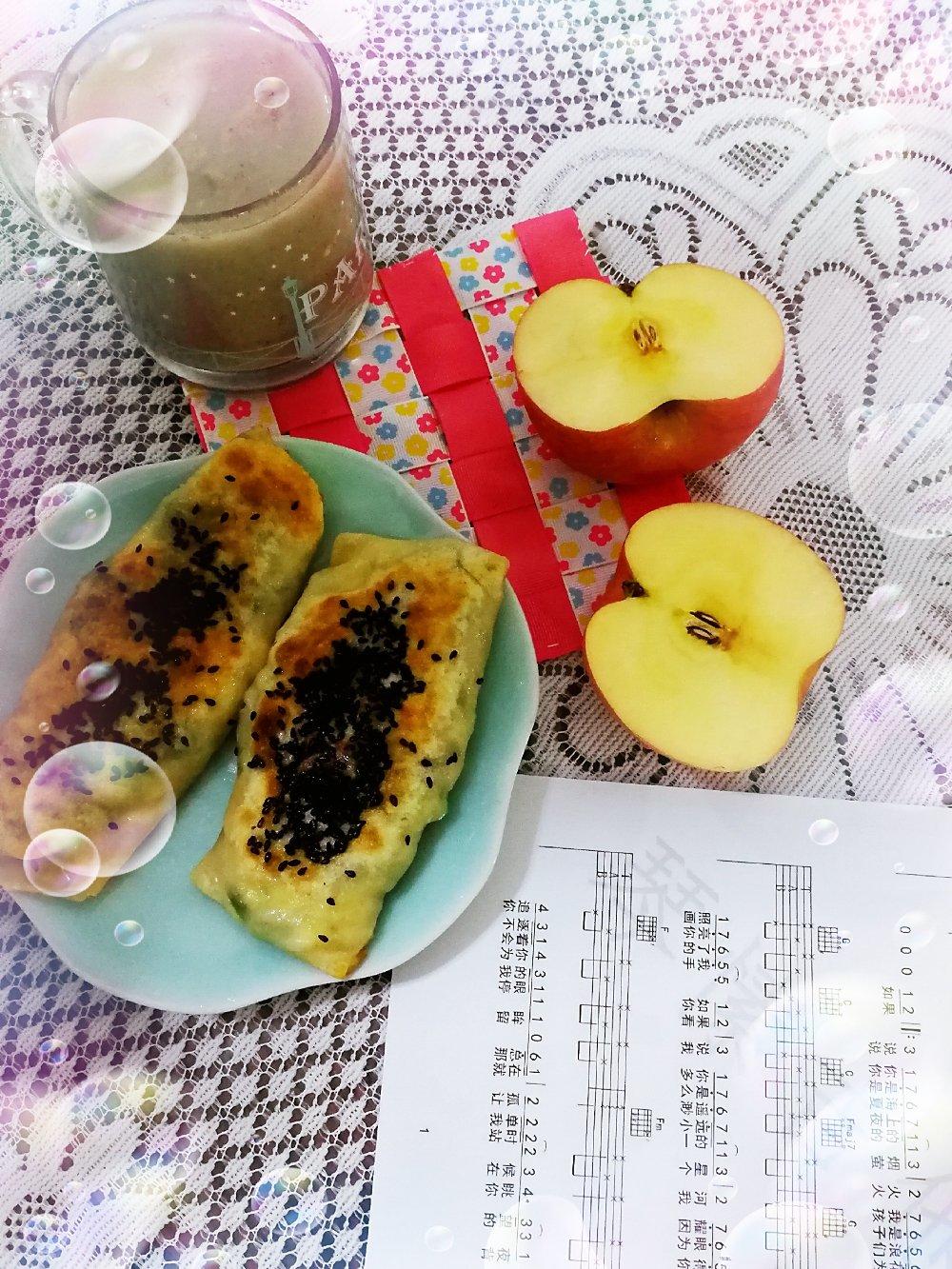 四季豆鸡蛋馅薄饼,杂豆豆浆,🍎