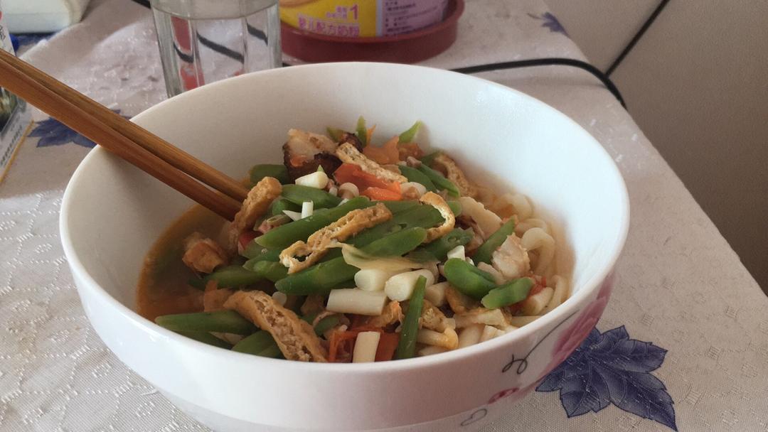 豆角炒肉白菇丁面